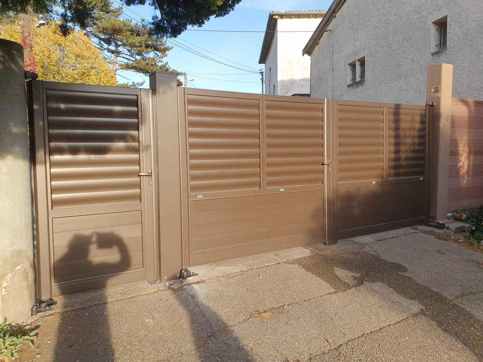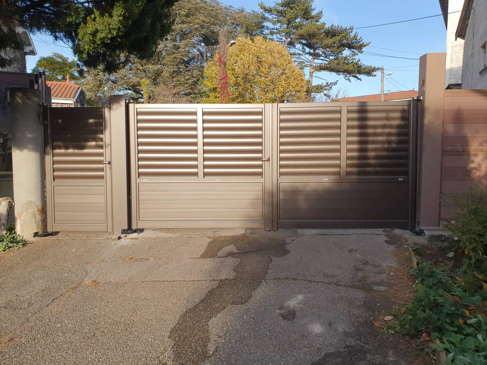 Cette semaine, nos techniciens TLD Komilfo ont installé un portail manuel avec sa porte en coloris bronze.