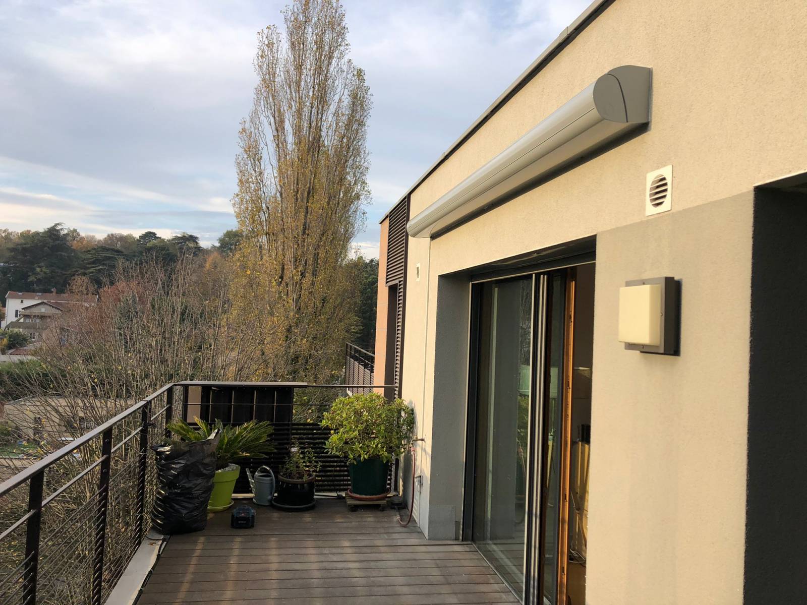Cette semaine notre équipe TLD Komilfo a installé un store sur mesure en extérieur motorisé. Le client a choisi un coffre couleur sable en accord avec la façade de sa maison. La toile en acrylique permet de se protéger du soleil, mais aussi des petites pluies puisqu'elle est imperméable.