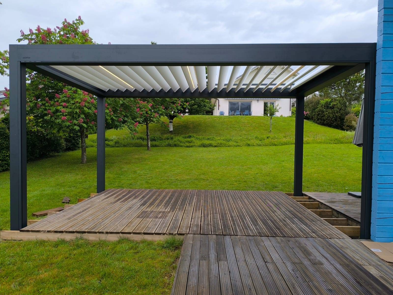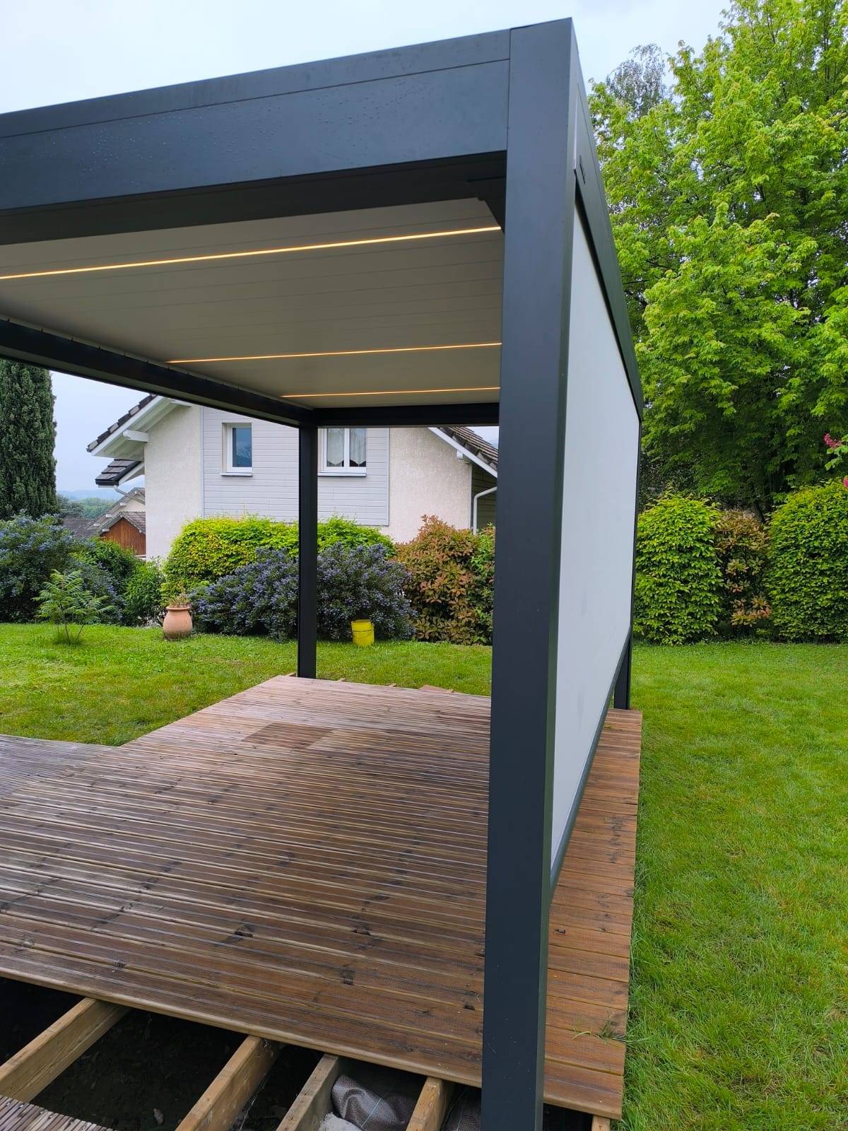 Cette pergola B200 XL installée à La Ravoire se distingue par sa polyvalence, son design sophistiqué et ses fonctionnalités avancées.
