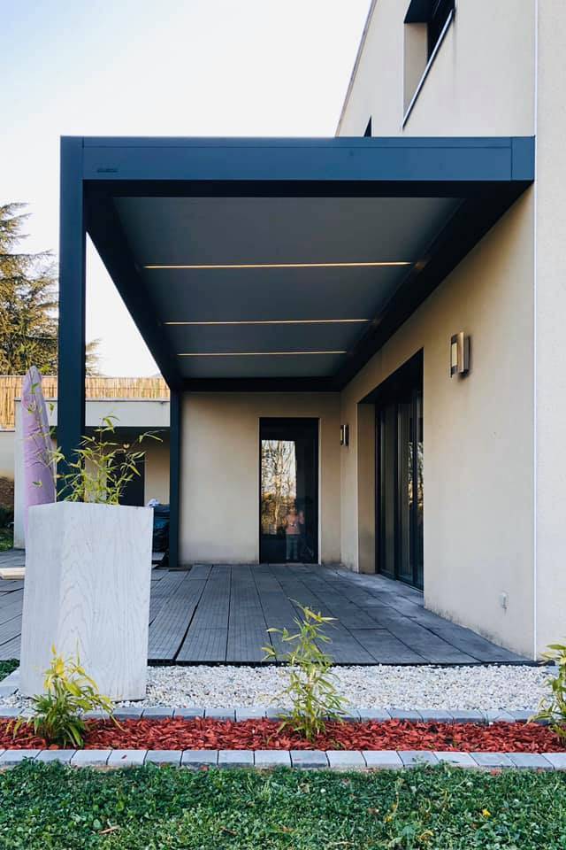 Installation d'une pergola bioclimatique sur mesure à Francheville (commune situé à 10 minutes de Lyon).