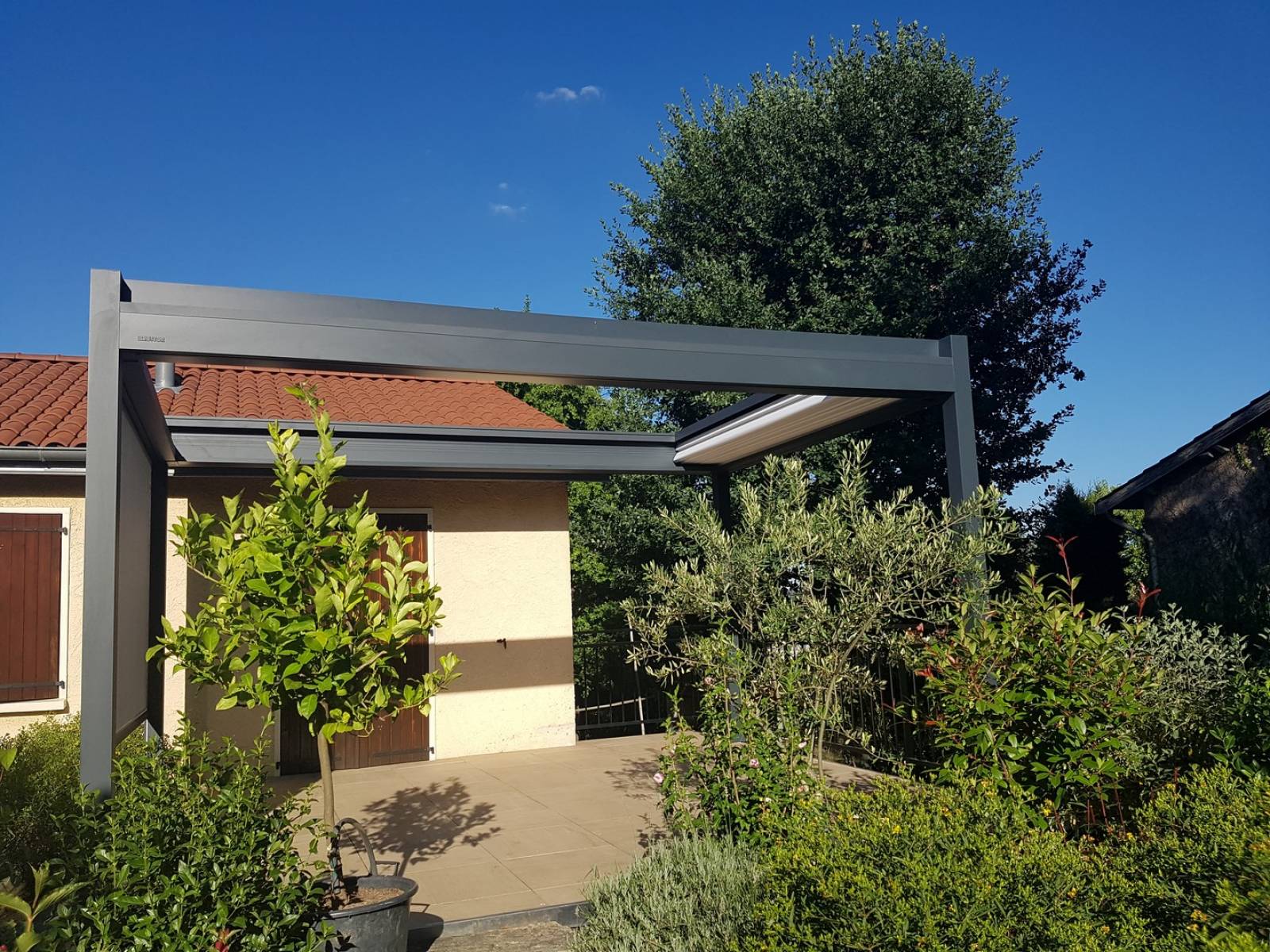 C'est pour ça que nos clients ont choisit d'installer cette pergola sur mesure avec toile enroulable à Craponne