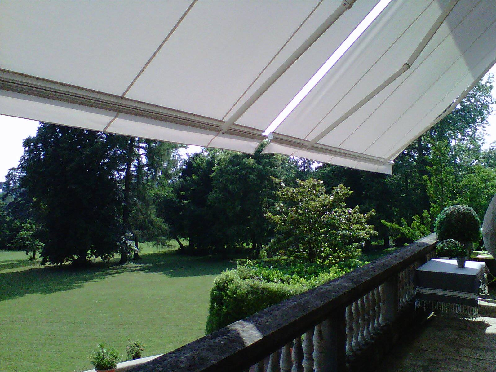Rénovation d'une ancienne battisse à Ecully en installant deux stores bannes sur mesure et motorisés. Idéal pour protéger la terrasse en hauteur sur cette maison, afin de se protéger du soleil et de la belle vue même durant les fortes chaleurs d'été.